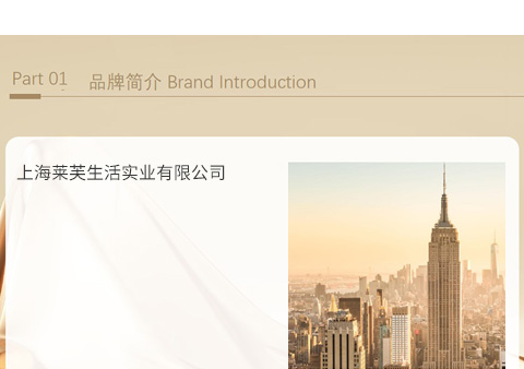 上海莱芙生活实业有限公司(简称莱芙家纺),创立于1994年,是一家具有 强大综合实力的知名家纺企业。公司拥有全球领先的技术研发中心、智能化 生产基地、战略性营销系统以及高效物流配送仓。品牌致力于为消费者打造 时尚家居用品,营造健康、舒适的睡眠环境,深受广大消费者喜爱。公司主 打品牌 “莱芙家纺”源自法国,多年来通过整合国际时尚设计,深入研究人 体健康睡眠与纺织技术,不断创新研发,以满足现代人对睡眠品质的需求。