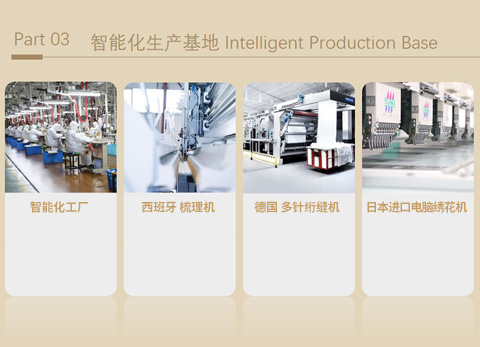 引进美国Sensor Products系统、德国“大象”绗缝机、意大利进口智能生产线等国际一流技术设备。