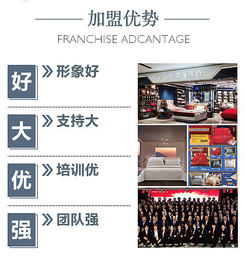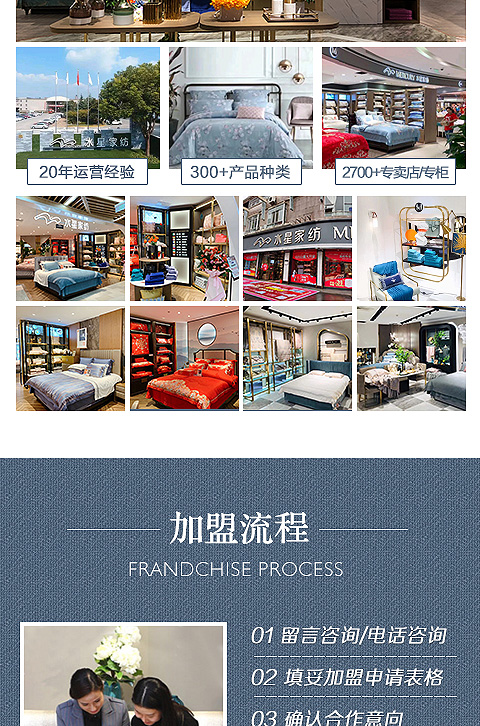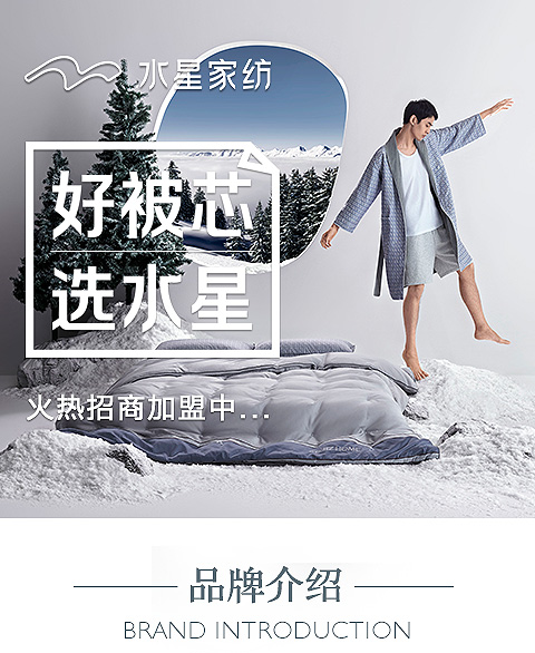 现在加盟水星家纺享9大优惠加盟支持!免费获取详细加盟优惠政策、加盟条件、产品图册、投资详情资料,敬请留言或电话垂询。
