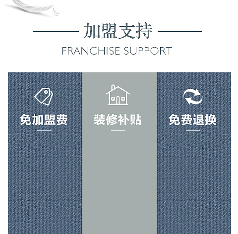 为降低加盟店进货风险和库存压力,给予免费退换货支持,加盟商销售过程中如有产生滞销产品可统一向公司进行退换。